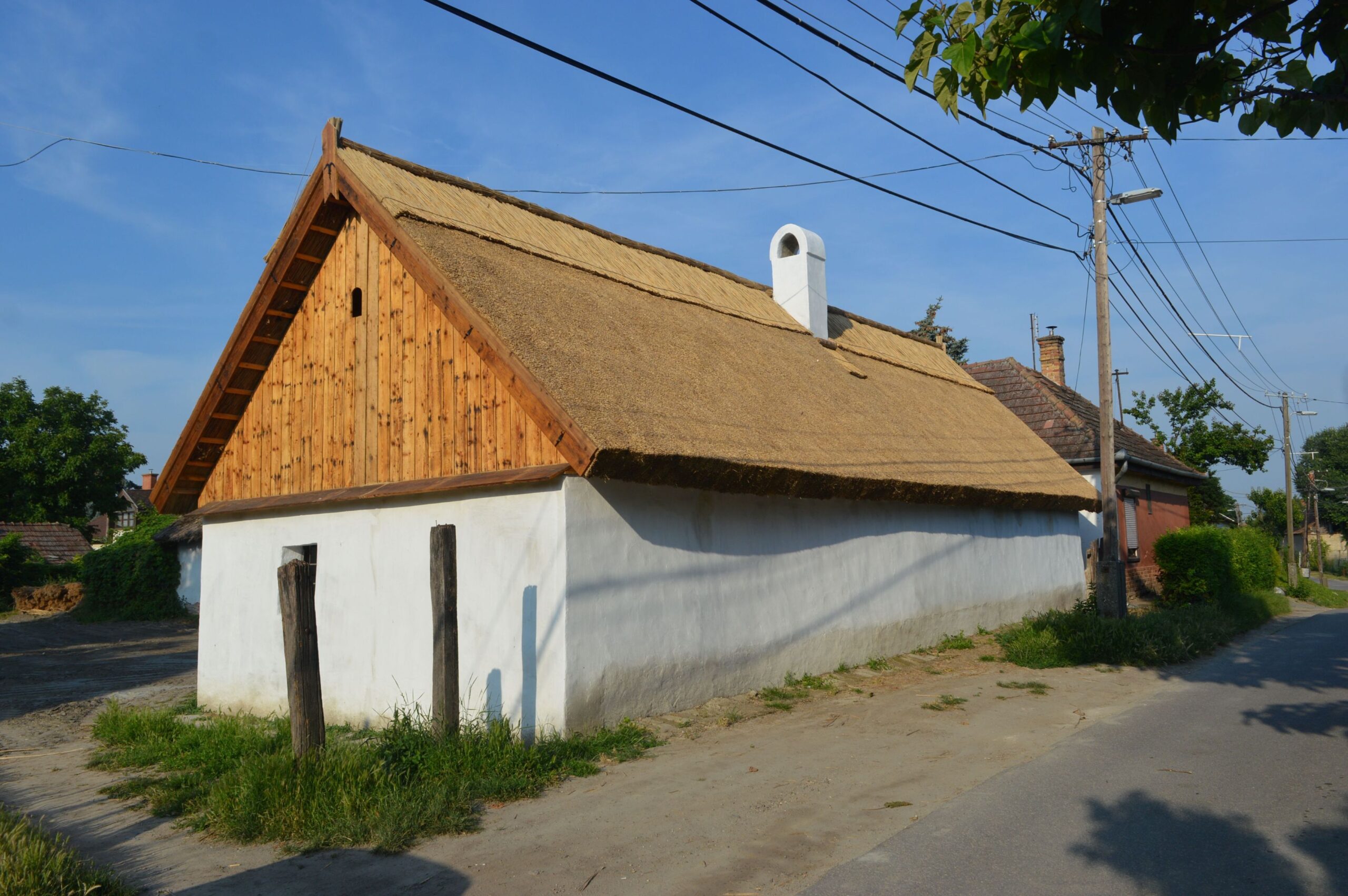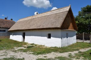 A portán az utca vonalát követő lakóház és egy arra merőleges tengelyű, későbbi építésű vályogtégla-falazatú kamra-istálló áll, lazán zárt udvaros beépítést adva a teleknek. A lakóház meszelt, vályoggal vert falai náddal fedett, torokgerendás fedélszékkel épült tetőt hordanak, végein deszkaoromzattal. A födém mestergerendával alátámasztott gerendáin sárral tapasztott nádfödém fekszik. Az épület a klasszikus háromosztatú alföldi háztípus példája. A pitvar boltíves falnyílása mögött boltozattal záródó szabadkéményes konyha, jobbra szoba, balra kamra nyílik. Építéskoriak nyílászárói, a gerendatokos deszkaajtók, kisméretű ablakok is. A lakóház értékes berendezése a szoba sárral tapasztott kemencéje hozzáépített tűzhellyel.